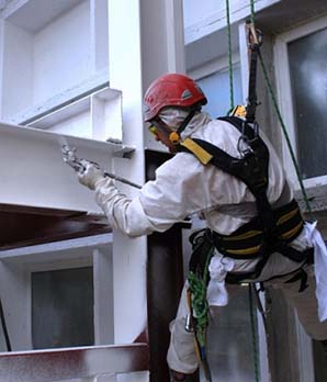 Далее производится механическая очистка, мойка металла и бетонных конструкций под давлением с помощью оборудования и спецтехники. Происходит удаление старого покрытия растворителем, коррозии и ржавчины. А также можно заказать клининговые компании, занимающиеся обслуживанием и чисткой на высоте.